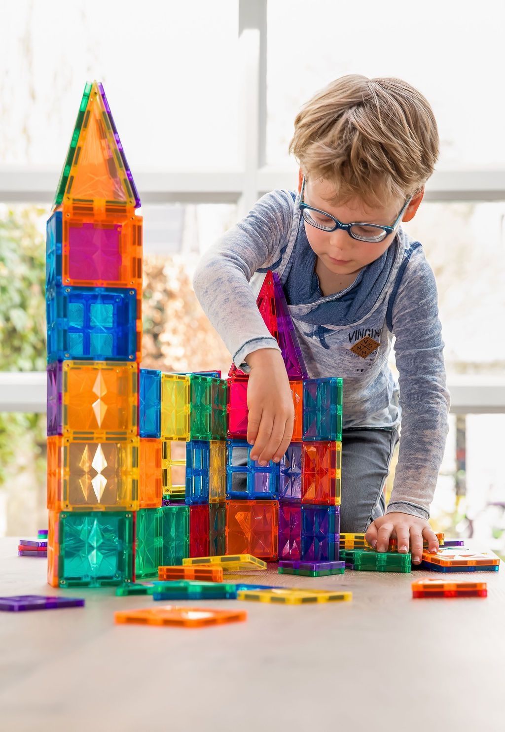 Magnetisch speelgoed is enorm populair geworden doordat je er urenlang speelplezier mee kan hebben. Bovendien is het montessori en open ended speelgoed, wat betekent dat er geen vooropgelegde spelregels zijn. Kinderen bepalen zelf wat ze gaan bouwen. Dit helpt om de creativiteit en fantasie van kinderen tot uiting te laten komen wat goed is voor hun ontwikkeling. Iedere keer opnieuw bedenken ze zelf weer iets anders. Kastelen, dieren, raketten, voertuigen en nog veel meer. Bovendien zijn de magnetische bouwstenen ontworpen om te passen op de bouwstenen van andere bekende merken, dankzij de afmetingen van 7.5 cm bij 7.5 cm. We hebben de merken Coblo, Gladi en Magneticon in ons assortiment. Gegarandeerd urenlang speelplezier!!