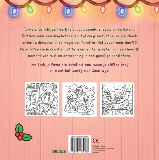 Coco Wyo heeft al duizenden fans geïnspireerd om hun stiften erbij te pakken en verovert TikTok en Instragram met populaire video's. Met dit leuke kleurboek van Coco Wyo kom je helemaal in de kerstsfeer! Het bevat meer dan 40 kleurplaten vol snoezige kersttaferelen waarmee je je creatief kunt uitleven. De Kerstman die zijn pak strijkt, Rudolf het rendier dat een wasbeurt krijgt, schattige dieren die kerstliedjes zingen… Dompel jezelf onder in de magie van Kerstmis en geniet van een heerlijk moment van rust, ontspanning en creatief plezier!
