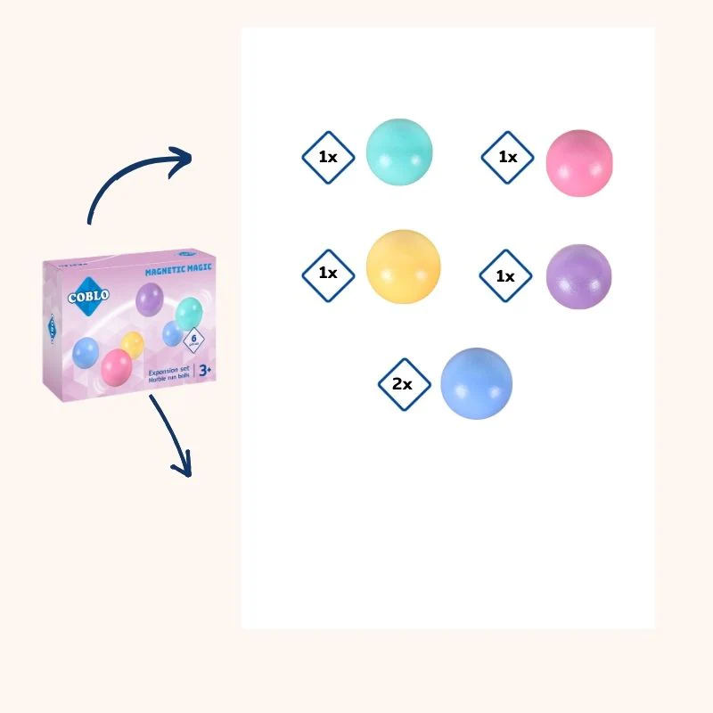 CobloMagnetische tegels - Pastel Knikkerbaan balletjes - 6 stuks - Uitbreidingen