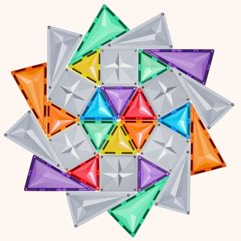 De doos bevat 100 klassieke magnetische bouwstenen, én je ontvangt in deze speciale promotieverpakking 10 gratis zilveren stenen!