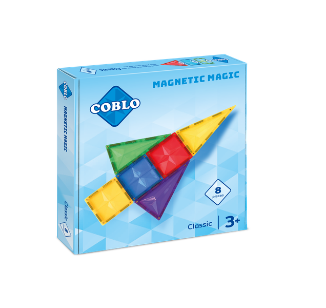 Deze 8 stuks verpakking bevat 8 magnetische bouwblokken in verschillende vormen en Coblo Classic kleuren, die kinderen, door de magneetjes in de stenen, makkelijk aan elkaar klikken. Ze hebben geen hulp nodig, wat goed is voor het zelfvertrouwen.