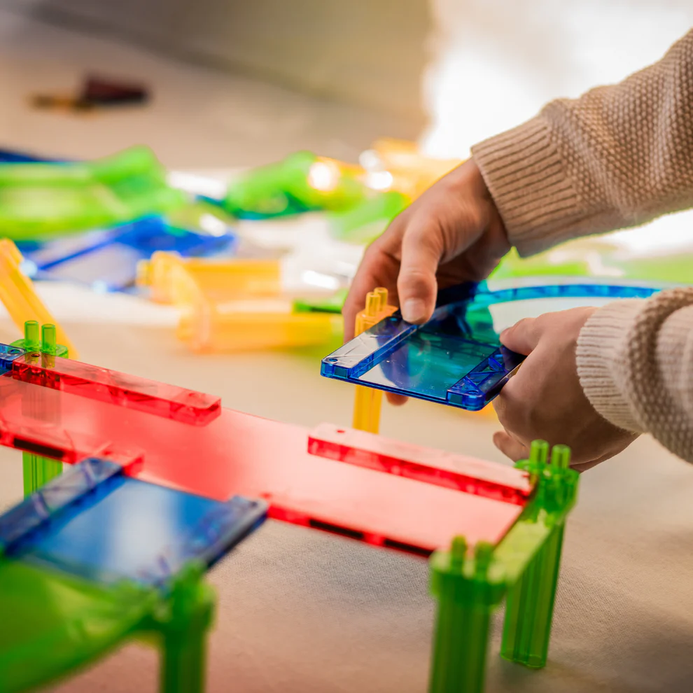 Maak je eigen racebaan. Hoe cool is dat!! Dat willen toch alle kinderen! En dan ook nog iedere keer een andere variant. De kleurrijke magnetische onderdelen prikkelen de creativiteit en fantasie van kinderen wat zorgt voor geweldige racebanen. Zo creëren kinderen al vanaf jonge leeftijd hun eigen parcours. De racebaan zorgt voor eindeloos bouwplezier en vooral leuke spanning hoe snel de raceauto’s de eindstreep halen.