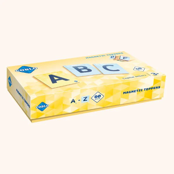 De magneet letters hebben het formaat van een Coblo steen en door de zwarte laag aan de onderkant (met magneetdeeltjes) klikken kinderen de magneet letters makkelijk op de Coblo stenen; deze passen precies op de Coblo stenen. Dit maakt spelen met Coblo nog leuker, creatiever, veelzijdiger en leerzaam. De magnetische letters zijn kleurrijk om veel plezier mee te maken en tegelijkertijd extra educatief omdat er is gekozen voor de gele kleur voor de klinkers en blauwe kleur voor de medeklinkers. Dit helpt kinderen om makkelijk het onderscheid te leren.