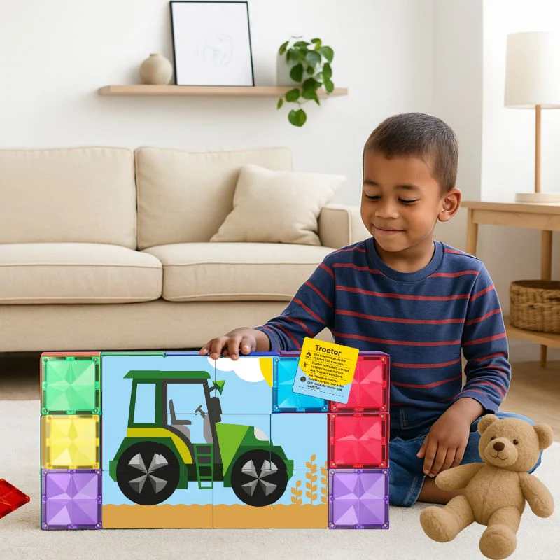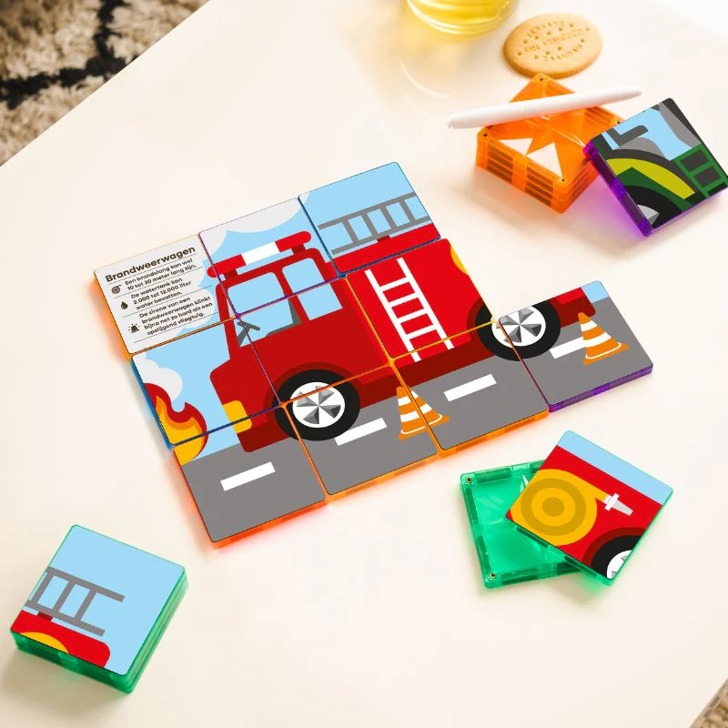 Kinderen kunnen ze 2D (liggend op tafel), maar ook 3D, waarbij de voertuigen staan, bouwen. Elk vervoermiddel komt met leuke weetjes die kinderen helpen meer over de vervoermiddelen te leren. De kleurrijke afbeeldingen inspireren kinderen om te bouwen, ontdekken, logisch denken en te spelen. De stevige magneetkaartjes blijven goed zitten en zijn perfect afgestemd op kleine kinderhandjes.