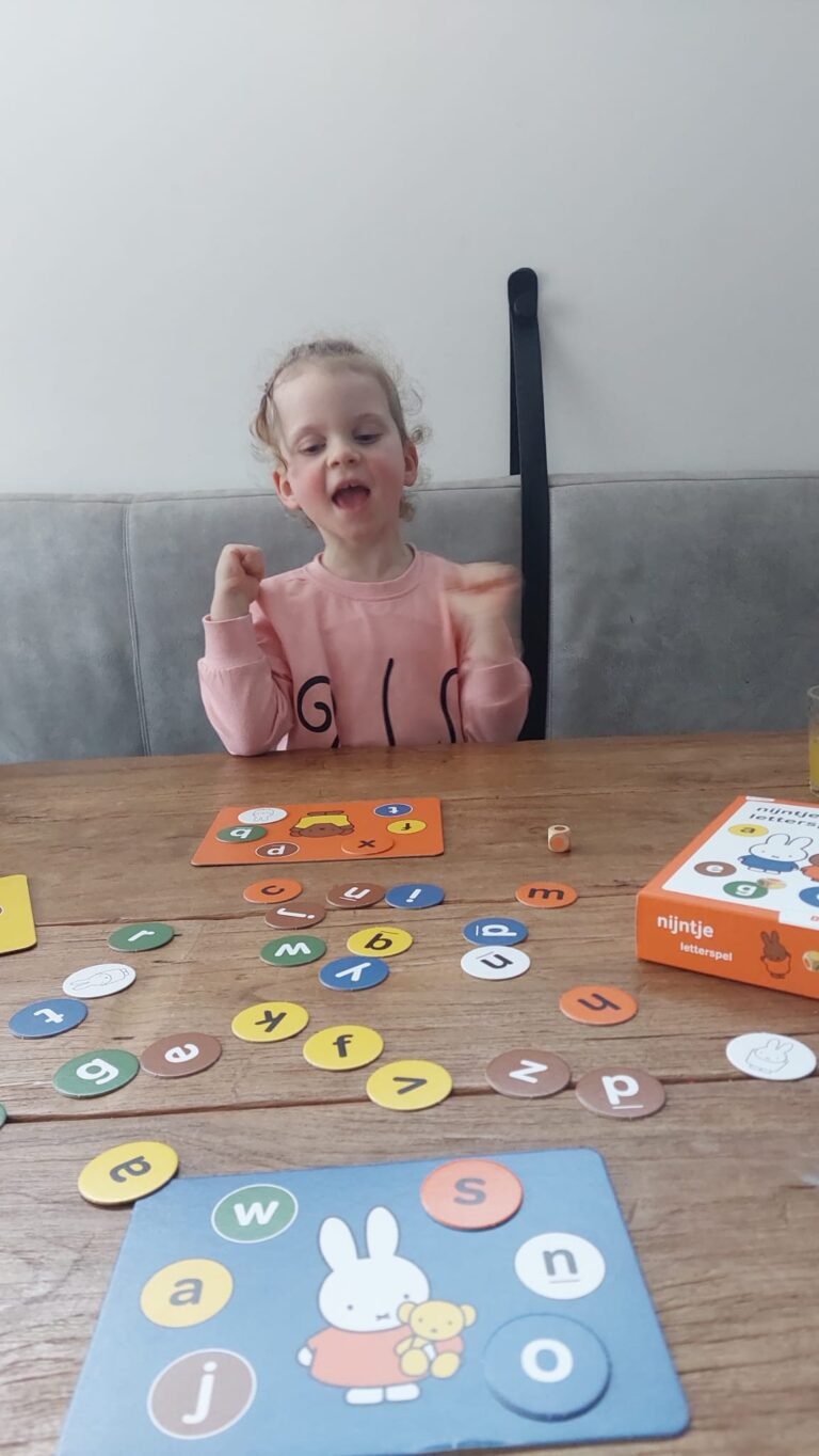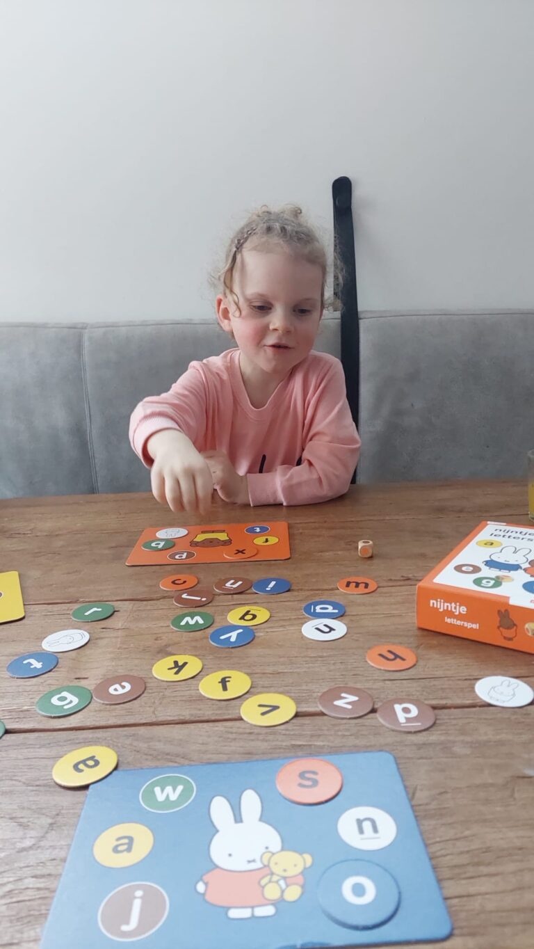 Speel en leer met nijntje in dit vrolijke letterspel. Gooi met de dobbelsteen en match de kleuren en de letters. Een feest voor peuters en kleuters!
