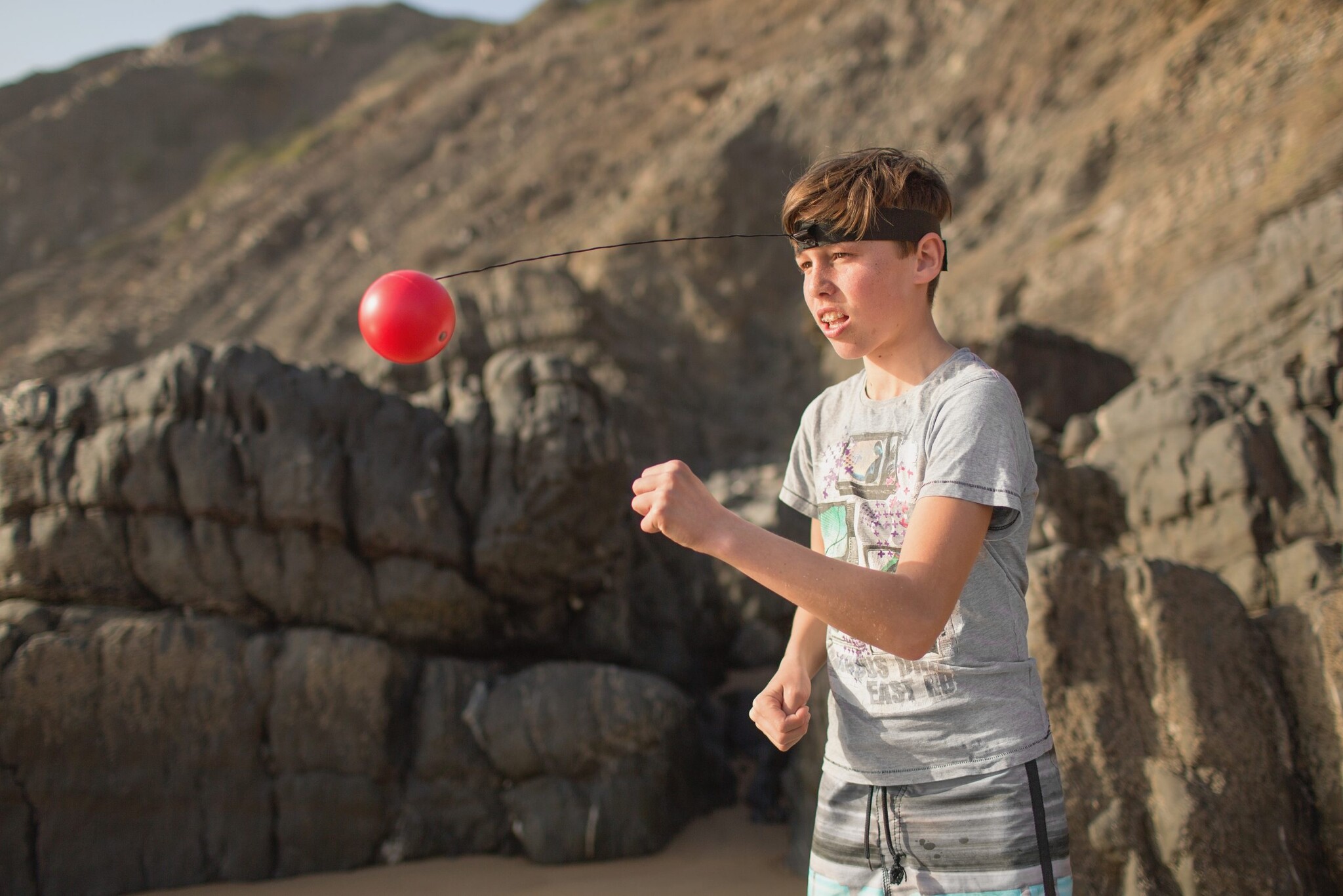 Reflex boxing ball is een leuke sportieve uitdaging. Train je hand-oogcoördinatie en reflexen. Doe de band om je hoofd. Probeer nu de bal zo vaak mogelijk achter elkaar te boksen. Door het elastiek komt de bal naar je terug, dus hoe harder je slaat, hoe harder hij terugkomt. De bal is van schuim. Speel het samen en tel wie de meeste keren achter elkaar kan terug slaan.