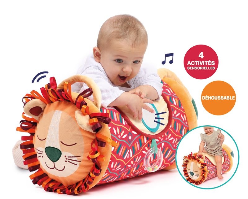Een superleuke schattige activiteitenrol. De "Lion" activiteitenrol is een opblaasbare cilinder met een zachte huls. Hij helpt kleintjes hun motoriek en coördinatie te ontwikkelen. Geschikt voor kinderen vanaf 6 maanden.