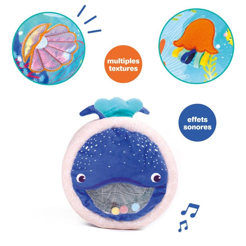 De Walvis Activiteitenrol nodigt je baby uit om een zachte en stimulerende onderwaterwereld te ontdekken! Dit motorische speelgoed, ontworpen voor baby's vanaf 6 maanden , stimuleert vroege ontdekkingstochten: kruipen, rollen, klimmen of vasthouden wordt een echt avontuur. De ronde vorm en het zachte materiaal bevorderen evenwicht, coördinatie en zelfvertrouwen.