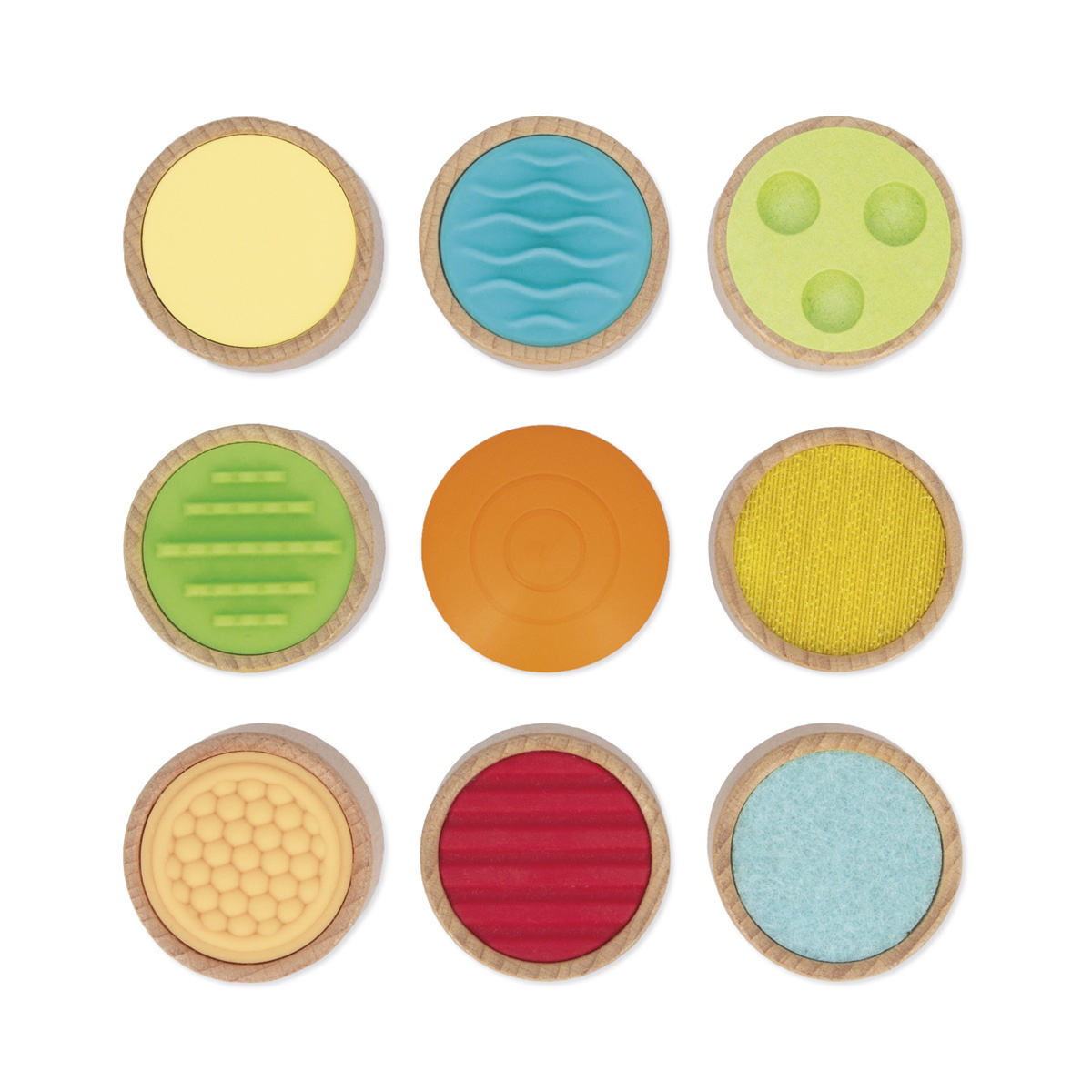 Dit tactiele herkenningsspel stimuleert zowel de tastzin als het sensorisch geheugen. De zachte, contrasterende kleuren onderscheiden elke textuur en stimuleren de visuele aandacht van peuters. Ze maken het makkelijker om de stukjes te herkennen en creëren tegelijkertijd een speelse wereld.