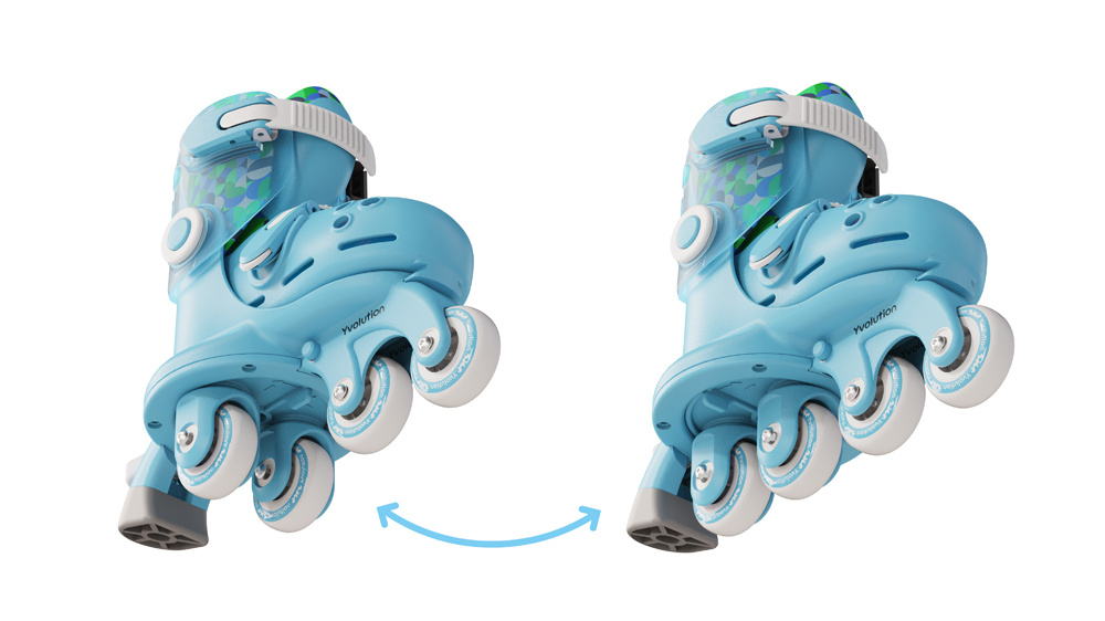 Met een als eerste op de markt verkrijgbaar wielflipmechanisme dat directe conversie tussen inline-modus en leermodus mogelijk maakt. Er is geen gereedschap nodig om uw kinderen op weg te sturen.
