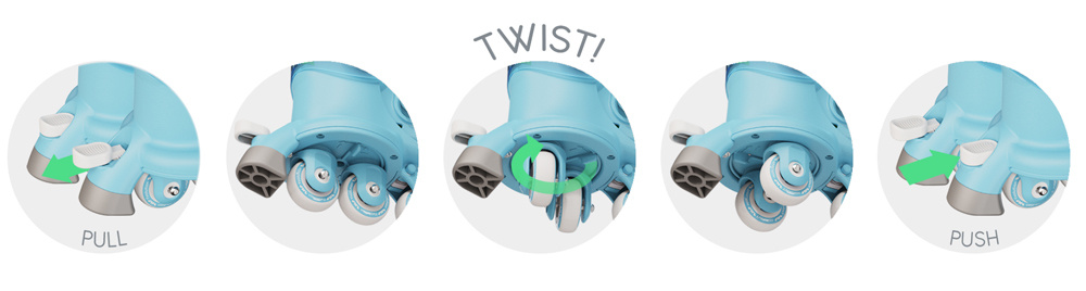Onze Twista skates zijn verstelbaar tot 6 maten. Dit betekent dat ze met de voeten van uw kind meegroeien, waardoor ze maximaal bruikbaar zijn en uw kinderen langer plezier hebben.