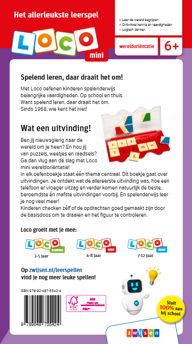 Een telefoon maken, hoe kom je erop? Wie bedacht dat briljante idee? En hoe werkte die eerste telefoon? Nieuwsgierige kinderen van 6-8 jaar krijgen geen genoeg van dit leerzame Loco mini oefenboek. De uitnodigende puzzels en opdrachten loodsen hen langs slimme, knappe en maffe uitvindingen. Spelenderwijs leren met Loco is zelf leren! Kies welk raadsel je op wilt lossen, maak de opdracht en draai de basisdoos om. Misschien brengt het je wel op een idee voor een eigen uitvinding?